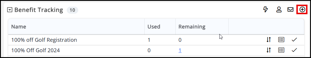 - Click the Plus icon in the Benefit Tracking section.