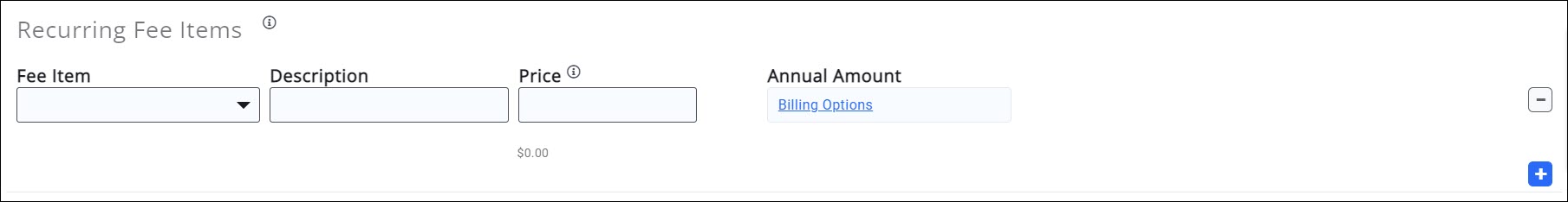 Billing Options (found adjacent to your fee items will vary dependent on whether you have your pricing set to prorate or not prorate