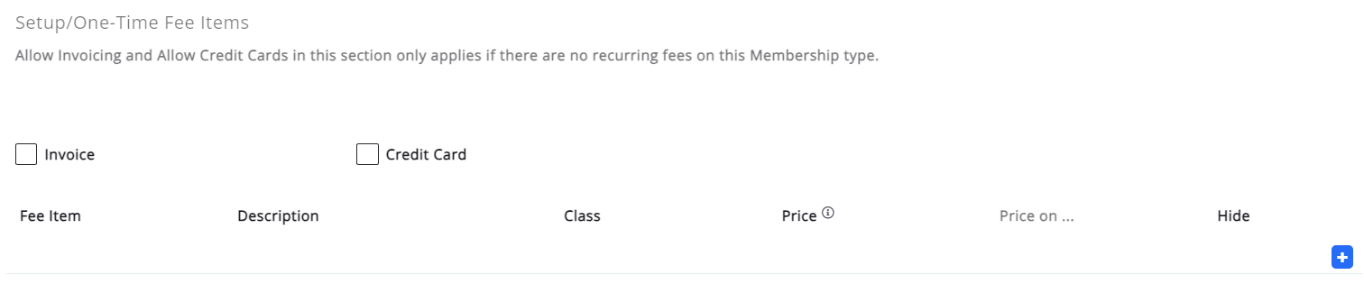 These fees are billed once when a membership is first activated. For example, you may include a one-time setup or application fee. If you choose to select the Invoice or Credit Card options, you will be able to review the application and assign a correct membership while still collecting the upfront fees.