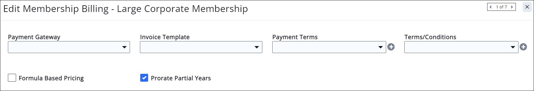 - Prorate Partial Years: Select this option is you wish to prorate membership dues. This setting is only visible if you have setup the membership type to renew everyone on a specific date.