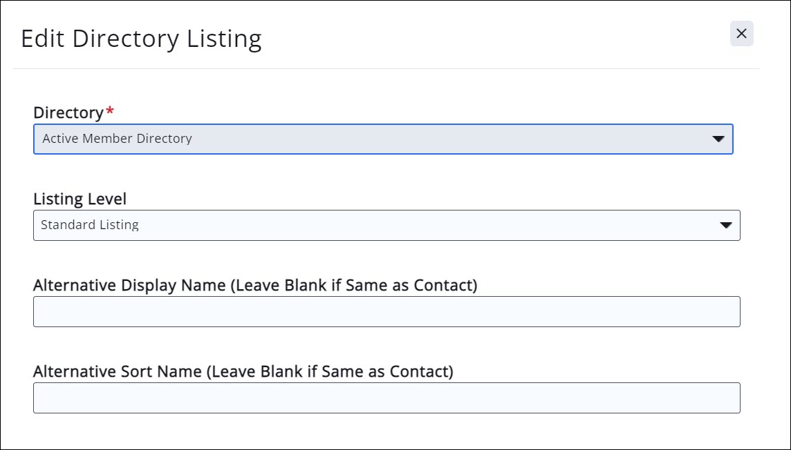 - Alternative Sort Name (Leave Blank if Same as Contact): This option allows you to enter a name other than the contact name to be used in the sorting function on the website. You will leave this field blank if you wish to display the contact name that is in the database.