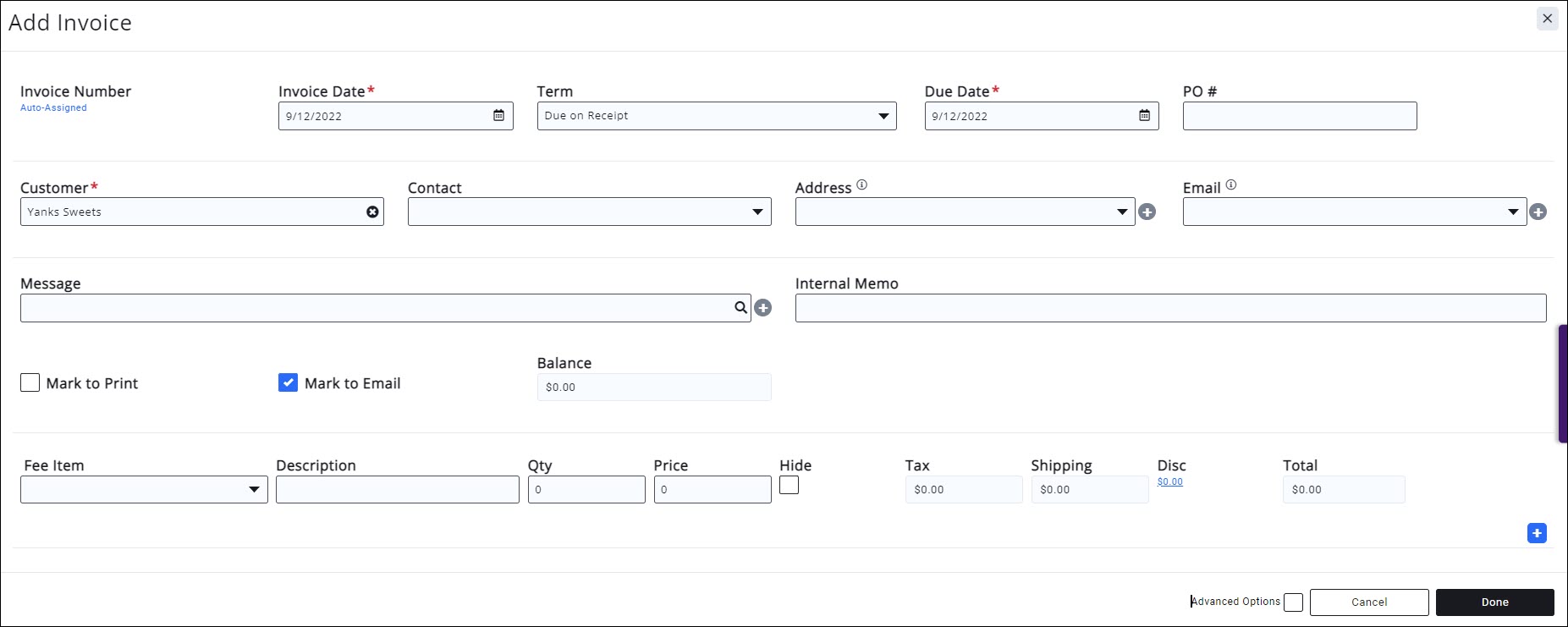 - Click Done. The invoice is now created.