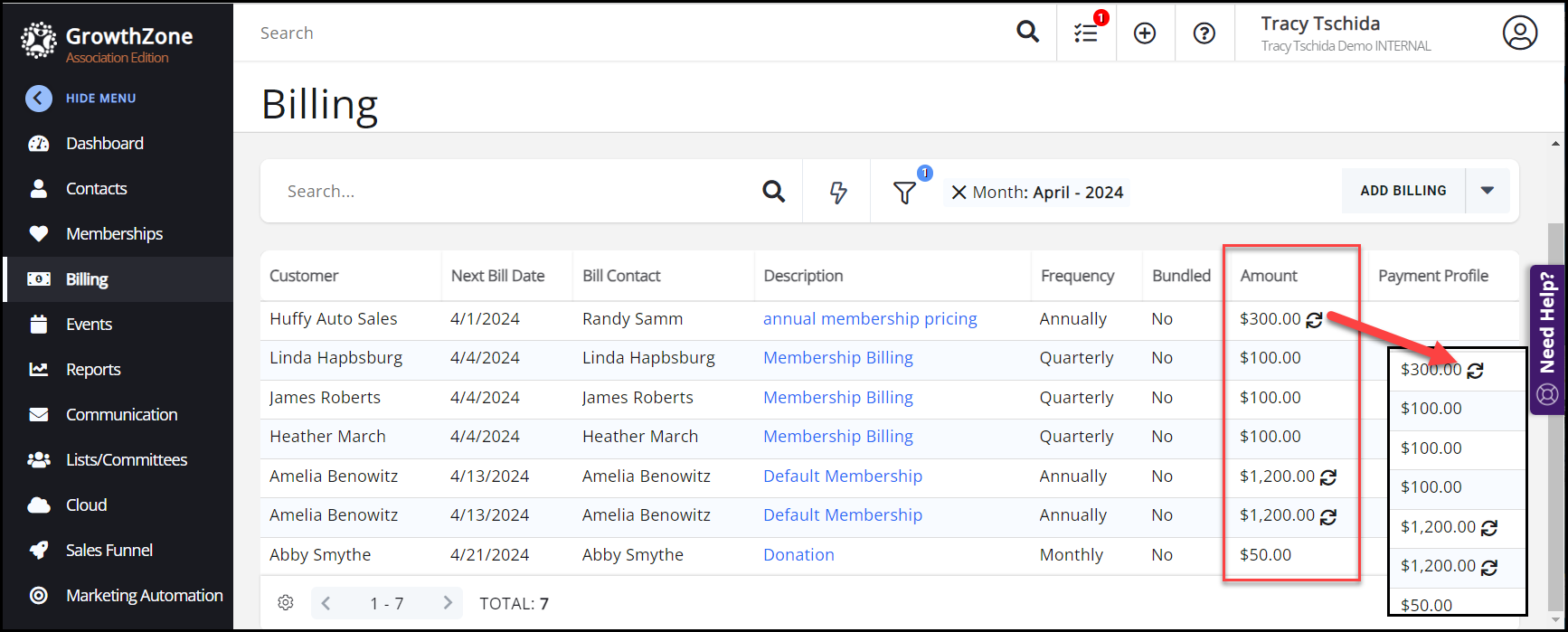 IMPORTANT: If you make price changes and plan on running billing on the same day, you must Review Renewal Billing to refresh the system for those price changes to take effect. |