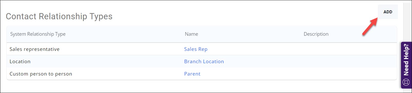 The system provides several relationship types, which are displayed for selection when you are working with your contacts: