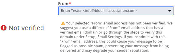 In your Email Settings is a section to verify your DNS in GrowthZone. This setup should be completed before you start using GrowthZone to email your members. If your DNS is unverified, you will experience issues in delivering mail to your members, such as GrowthZone-sent emails ending up in a Junk folder or being rejected by email filters or network firewalls.
