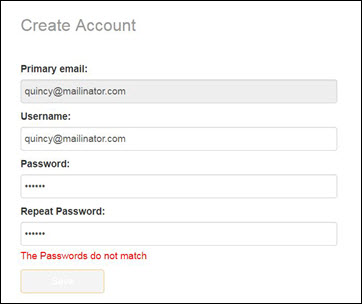 - They may then enter their own Password. They must repeat the password; if the passwords do not match The Passwords do not match will be displayed. The user must fix the mismatch before they will be able to save the credentials.