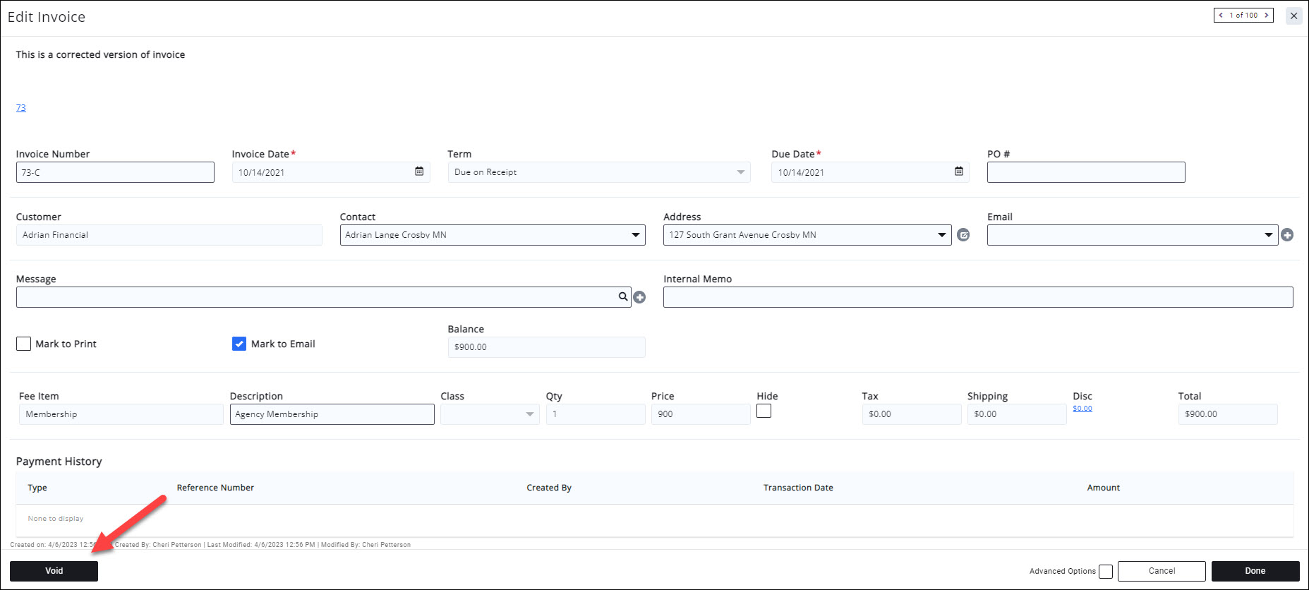 Members/customers will automatically be redirected to the corrected invoice if they click on a link in prior emails or PDFs
