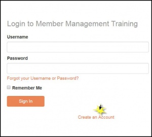In certain situations, you may not be sending an email to a user with instruction on creating their account. A user may have access the Info Hub log-in screen, or you may have directed a new applicant to the Info Hub after completion of the membership application. In this situation, the user can click the create an account button to create their user name and password.