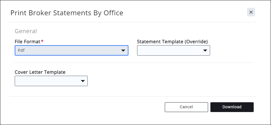 - In both Email Statements and Print Statements, if a specific statement template is not selected, then the statement labeled “BrokerStatementByOfficeWithPay.docx” will be used by default.