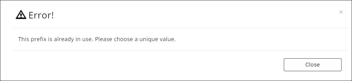- Save your settings. The system will peform a check to ensure the prefix is not being used by another association. If a match is found a dialog box will display notifying you that the prefix is already in use. The page will not save until you are able to enter a valid prefix.