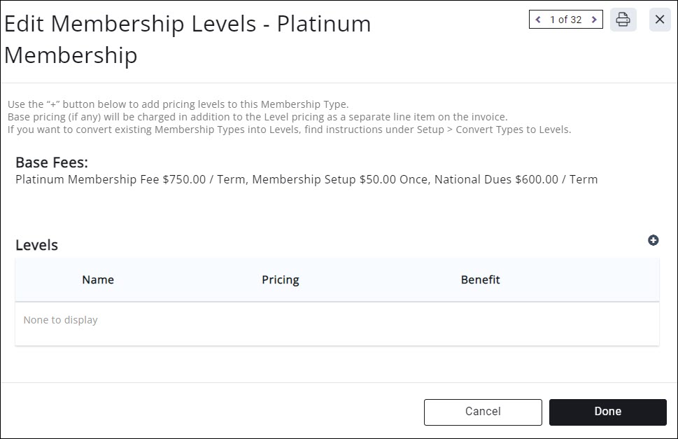 icon. NOTE: If you have set one time fees for the membership type, the one time fees set for the level are in addition to the one time base fees. See Add Pricing to a Membership Type for further information.