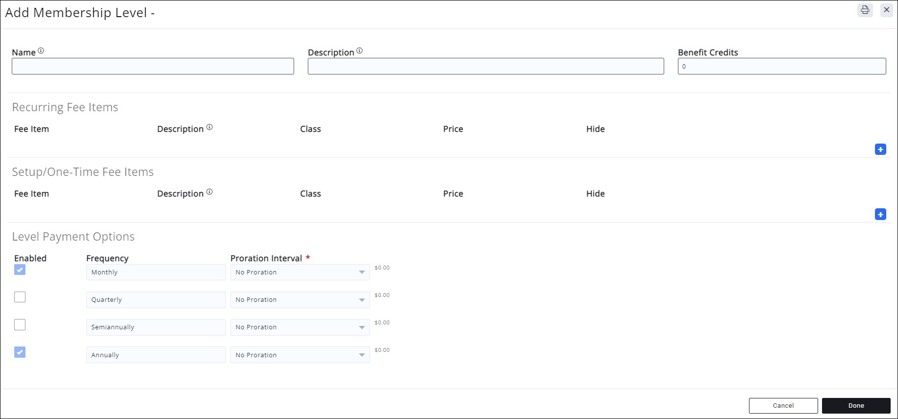 Repeat steps 2 - 8 above to add additional levels to your membership type. You may add up to 50 levels.