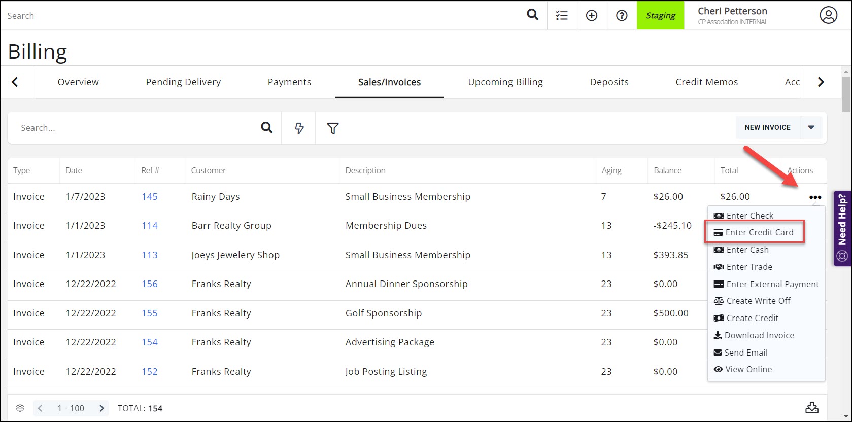 Credit Cards can be processed either in the Billing module or from an individual contact's Billing tab. NOTE: The steps below apply to processing for GrowthZone Pay and NAR eCommerce.