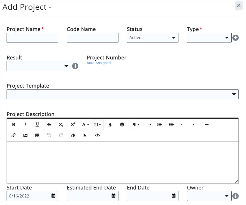 - Start Date: Enter the start date of the project. The system will default to the current date