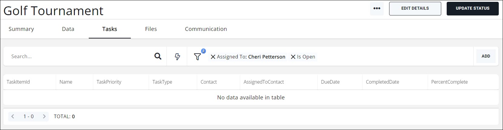 - Event: If this project is to be tied to an event, enter the name of the event. Once the project is saved, the project will be displayed on the event's tasks tab