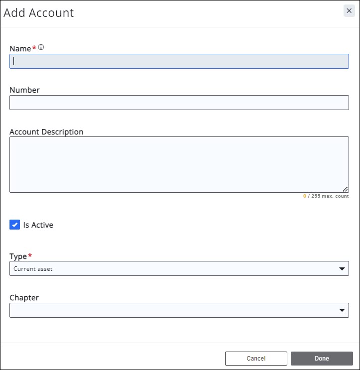 - f. Chapter: If applicable, select the chapter associated with this account.