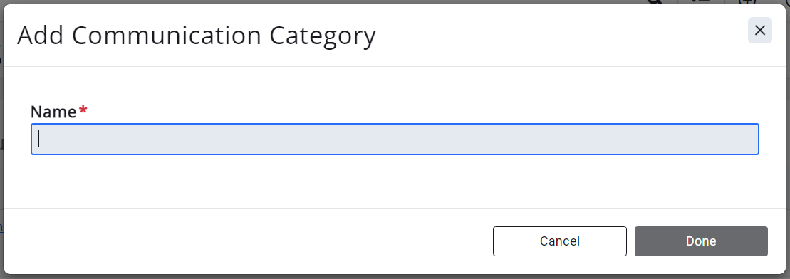 - Enter a Name for the category. This name will be displayed when you are selecting communication categories within the software so it should be descriptive and reflect the purpose of this category.