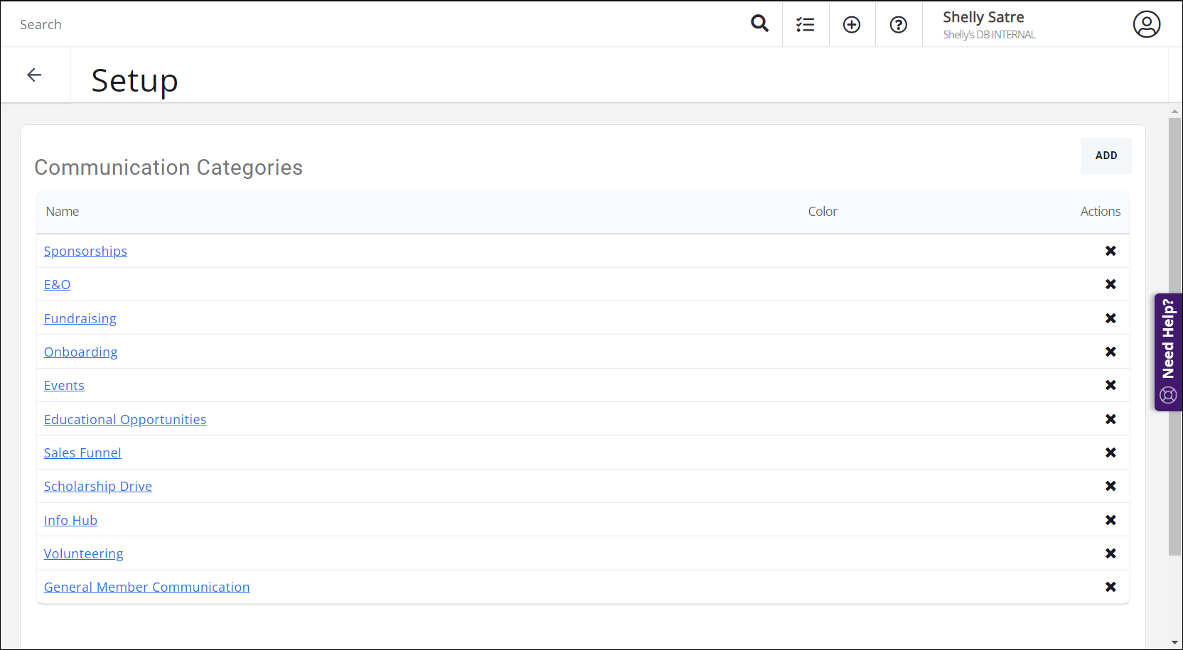 - In the Communications section, click Communications Categories. A list of the current categories in the database will be displayed.