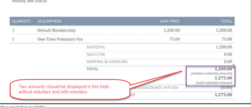 - TotalLabel is a text field would be used in combination with the Total Due field so that it identifies automatically if the total include any voluntary amounts.