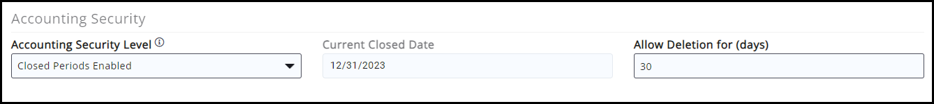IMPORTANT: The Allow Deletion Days parameter is impacted in when closing a period. The ability to delete will depend on which date is earlier.