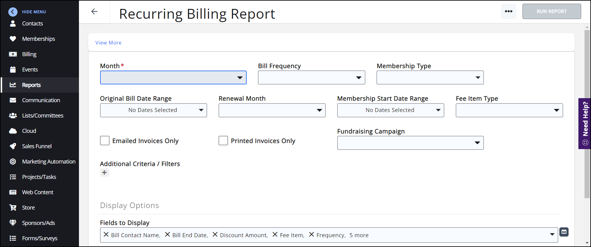 Select Recurring Billing Report.