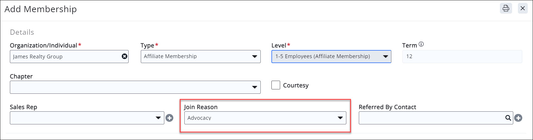 Tracking why members are joining your organization is a great way to understand their needs so that you can tailor your benefits and programs accordingly. These join reasons can be selected when adding a membership from the back-office.
