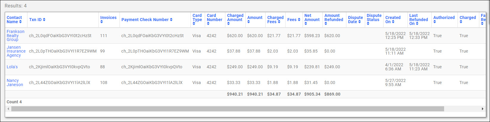 Note: Prior to June 15, 2024, if using Stripe Link, the Card Type will appear as unknown and the Card Number will appear blank in the report. Now, if using Stripe Link, the Card Type will appear as unknown the Card Number will appear with the last four digits in the report.