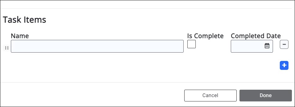 - Task Items: Task items allow you to break down the task into smaller, more manageable sub-tasks. These are not required, you can simply setup the task as a top level task