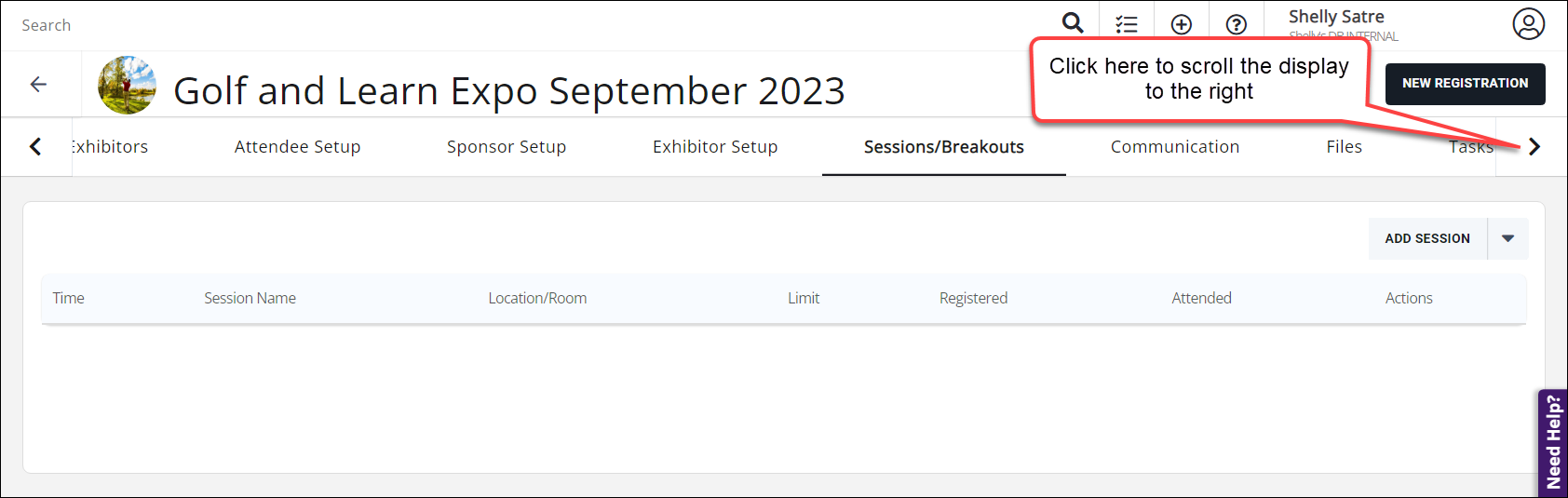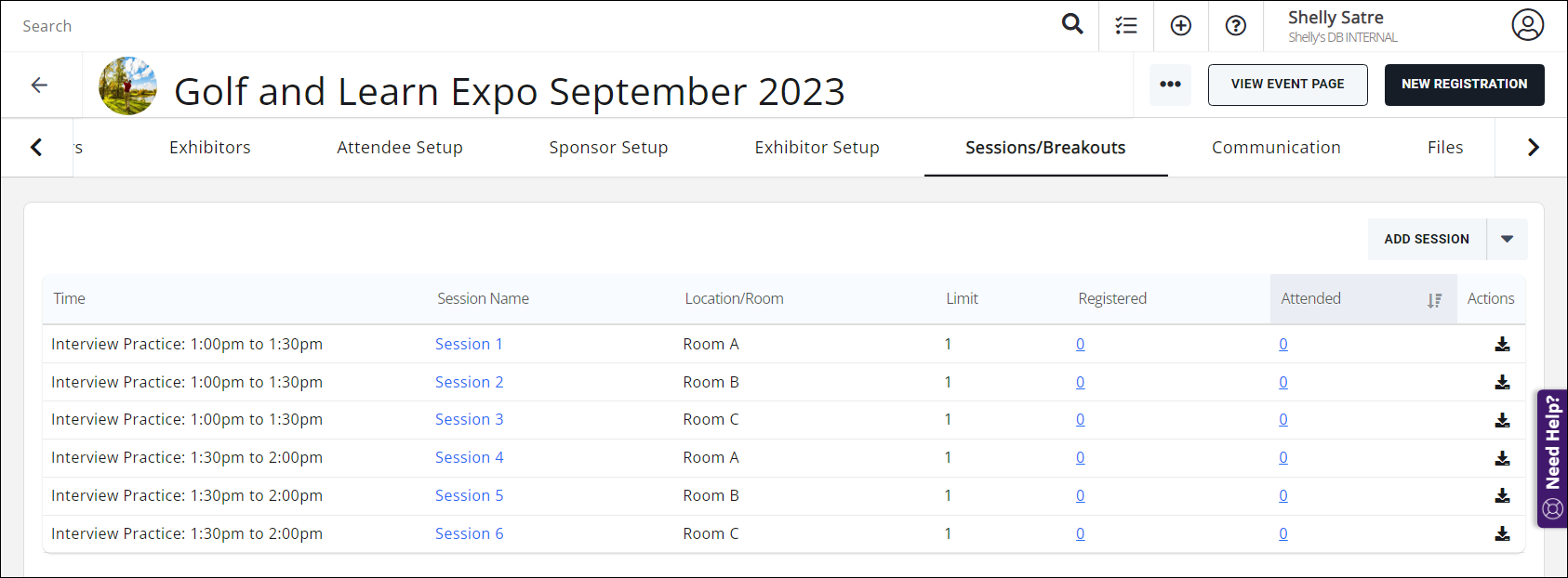 - For the desired event, click the Sessions/Breakouts tab.