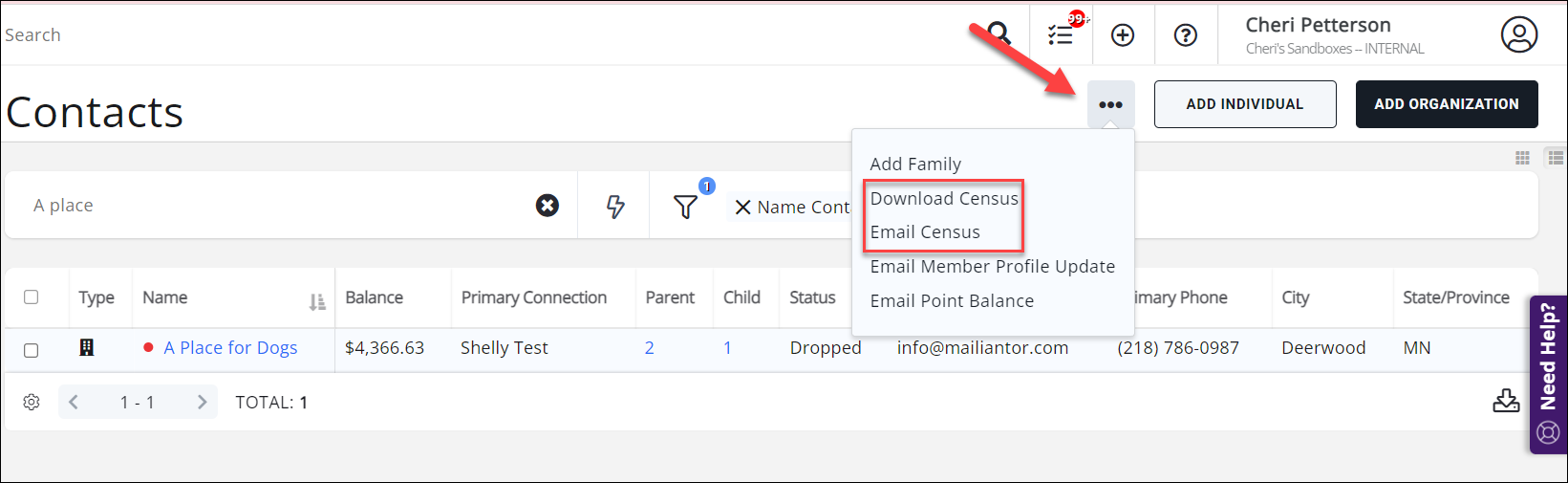 - Alternately, the census can be sent to an individual contact by entering the Contact name. Only one contact may be entered.