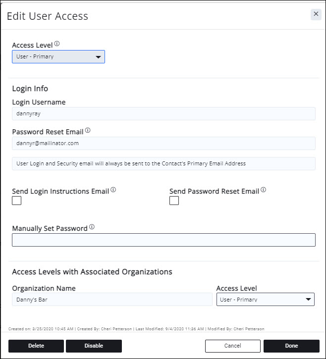 - Make the desired changes to access level