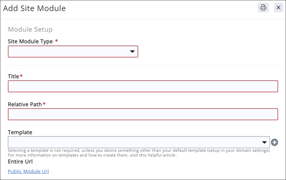 - Enter the Title for the Module - this title will be displayed on your web-site