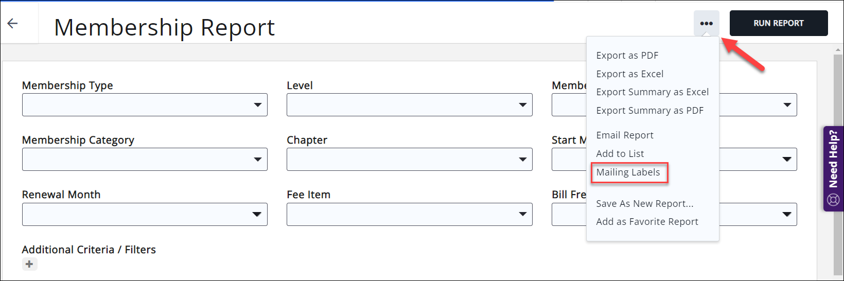 - Define the desired filters for your Member Report. NOTE: The report Display Options must include the field you wish to include in your MailMerge.