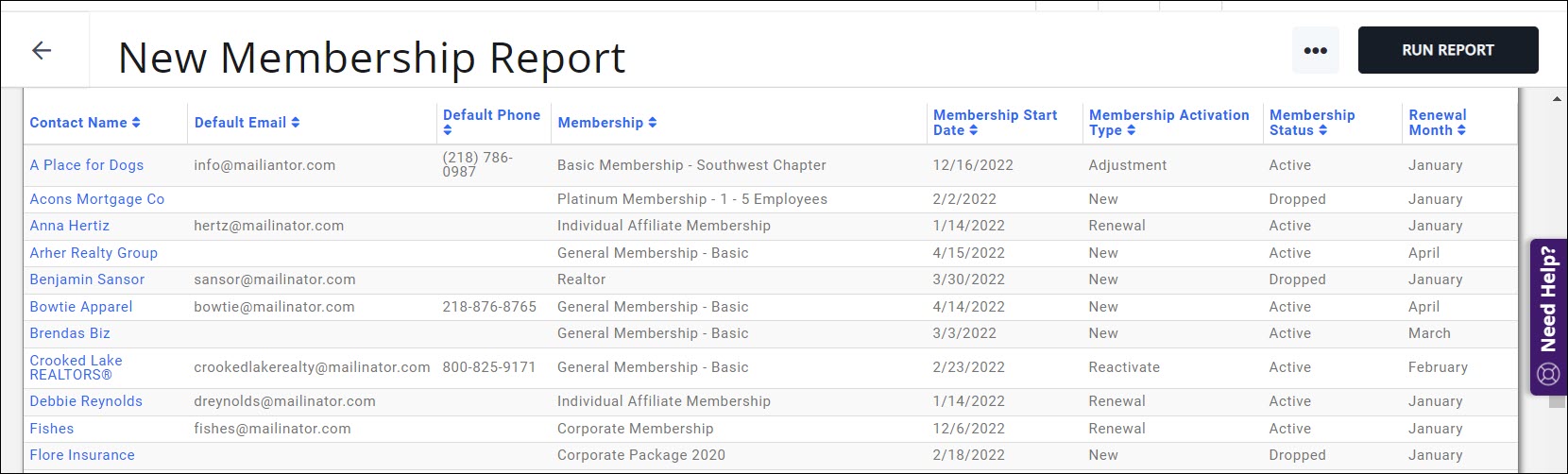- Select New Membership Report.