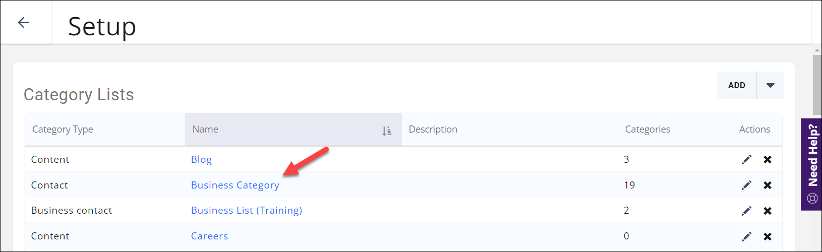 - Click the name of the category list to which you wish to add the new category. This will open the window showing you the list of category items already in that category list.