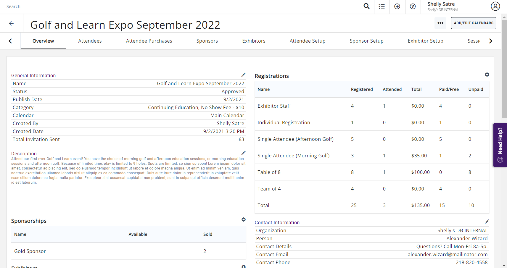 Click the name of Event you wish to edit to open the event's page. The Event page is setup with several different tabs that provide the functionality to customize and manage your event; you can edit the event general details on the Overview tab.