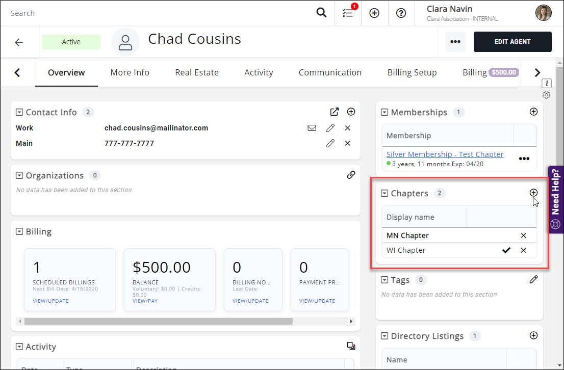 In addition to the above, members may be affiliated to chapters manually on the contact's overview tab: