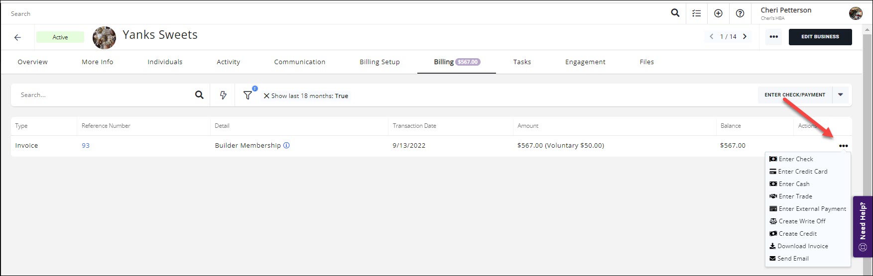 Cash payments may be entered from a contact's Billing tab or in the Billing module on the Sales/Invoices tab