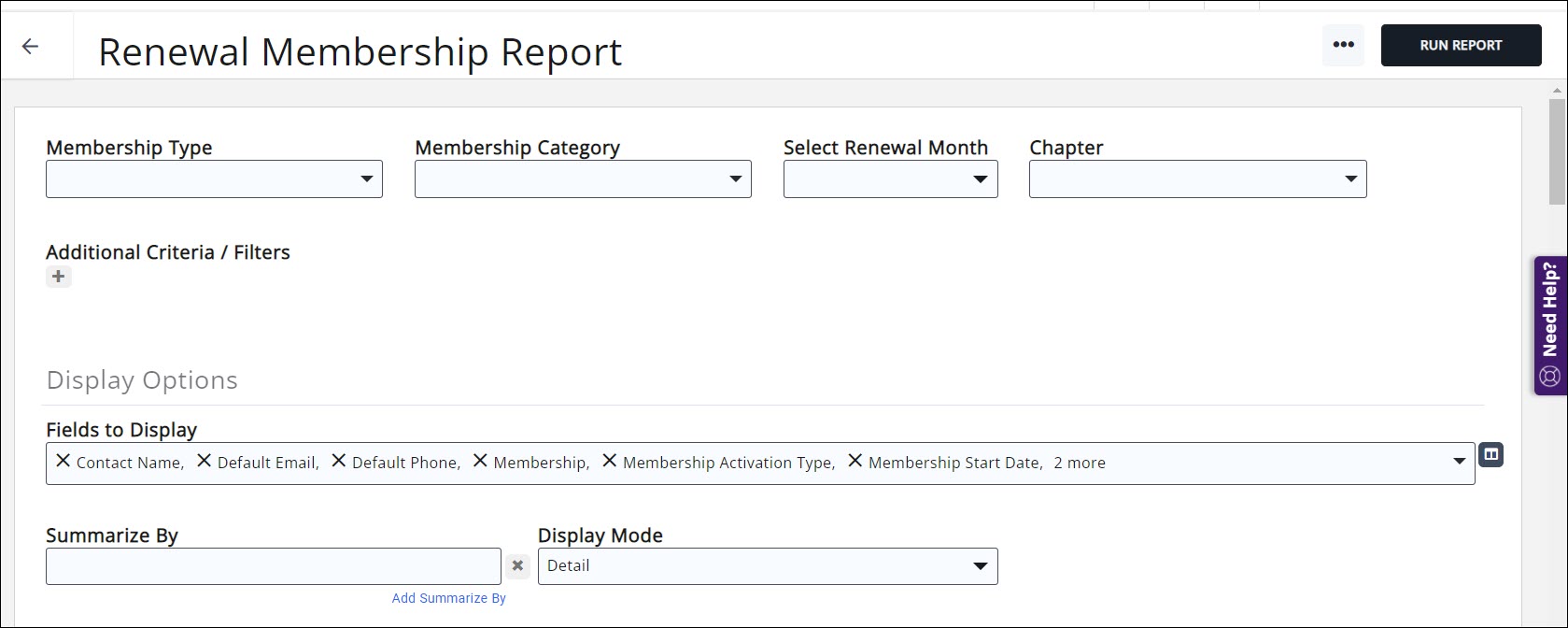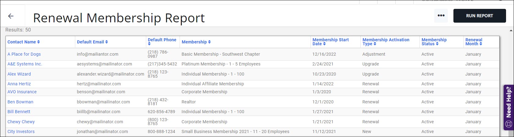 The Renewal Membership Report allows you to generate a list of all members, with the associated renewal month. You may choose specific renewal months to narrow report results.