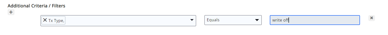 - Optional - Enter a Search/Filter query. For example, if you wish to view all write-offs, select Tx Type.