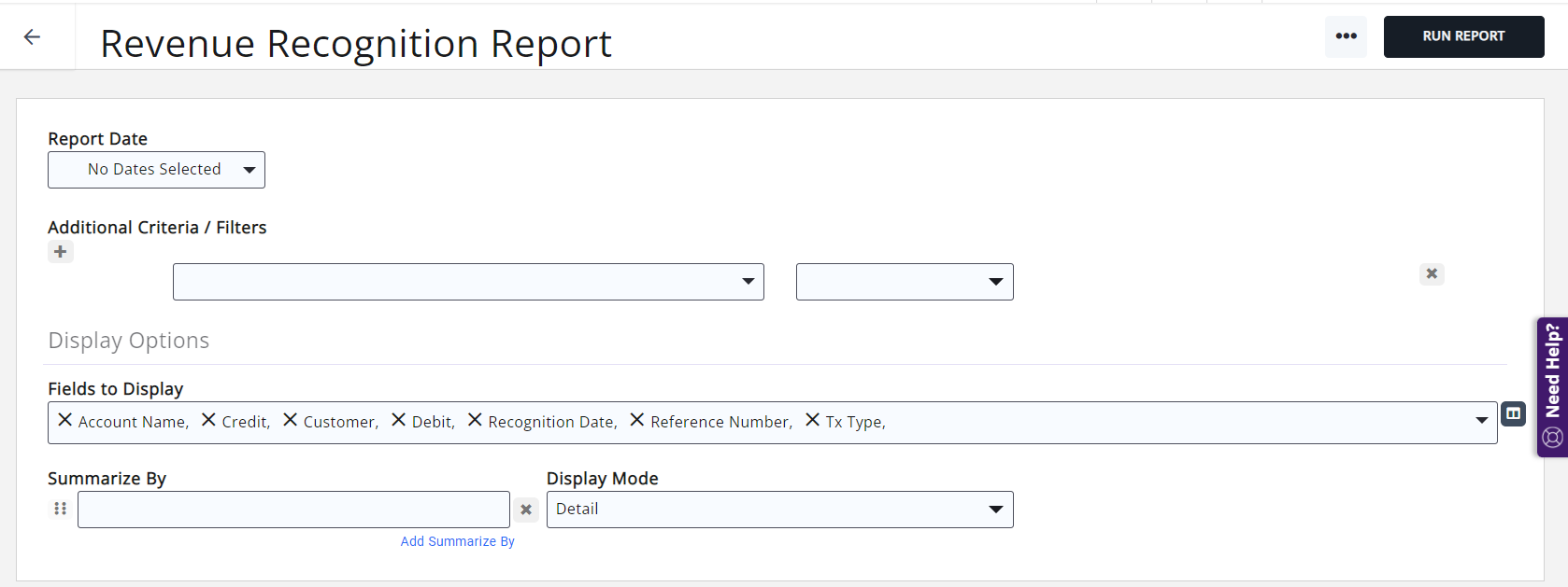 - Select Revenue Recognition Report.