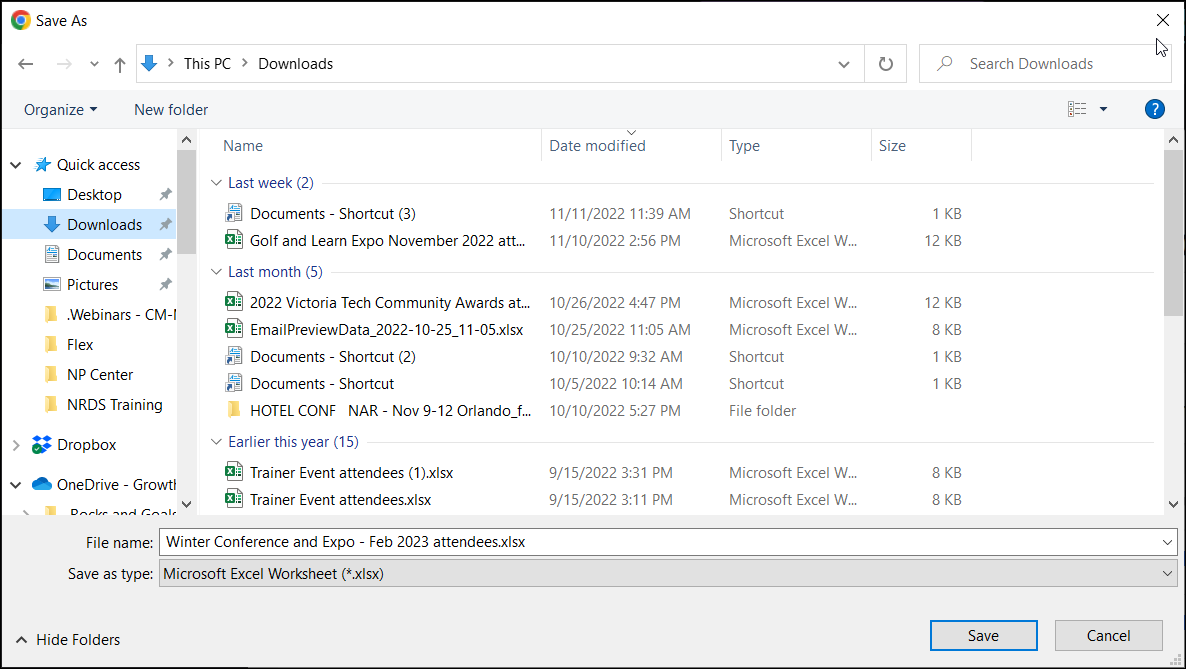 The system will download a .xlsx file to your computer. Save it where is most convenient/memorable.