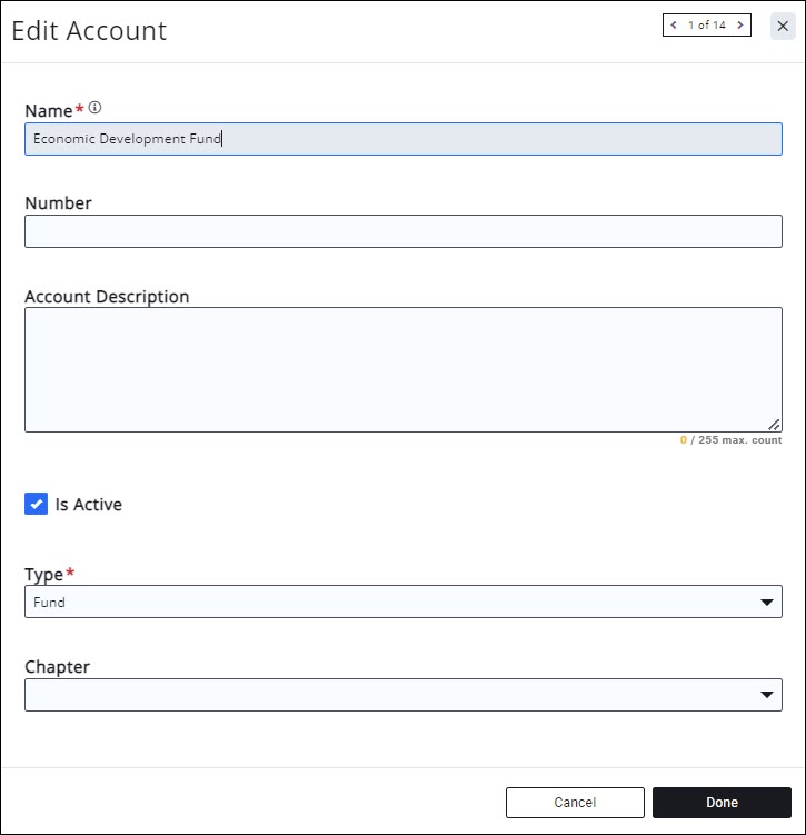 - Click Chart of Accounts in the Finance section. A list to the accounts currently configured in your system will be displayed