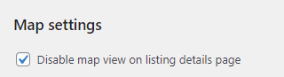 First Map Settings section: place a checkmark for "Disable map view on listing details page", save changes