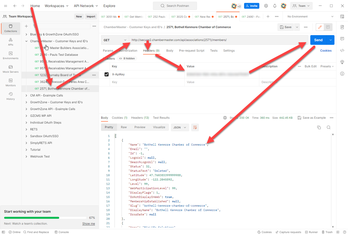 - Open up PostMan and Add the Key to the ChamberMaster - Customer Keys and ID's area, Link on setting up PostMan and testing a Key Here.