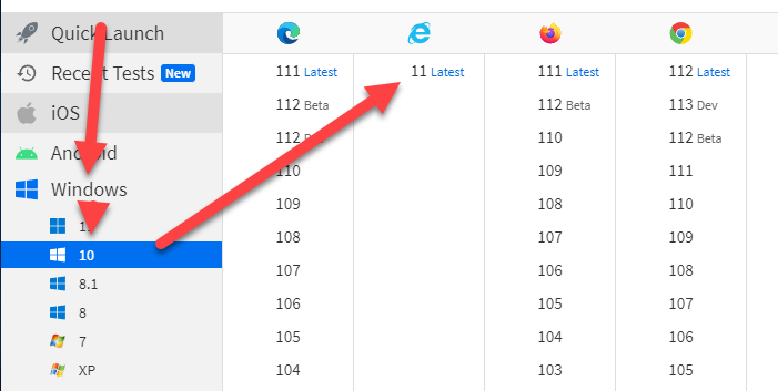 - Go to Windows 10 and IE 11 Latest