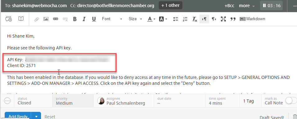 - Provide the Key and ID of the Customers Database to the customer Using the Chambermaster/MemberZone API Key and Documentation Canned Action
