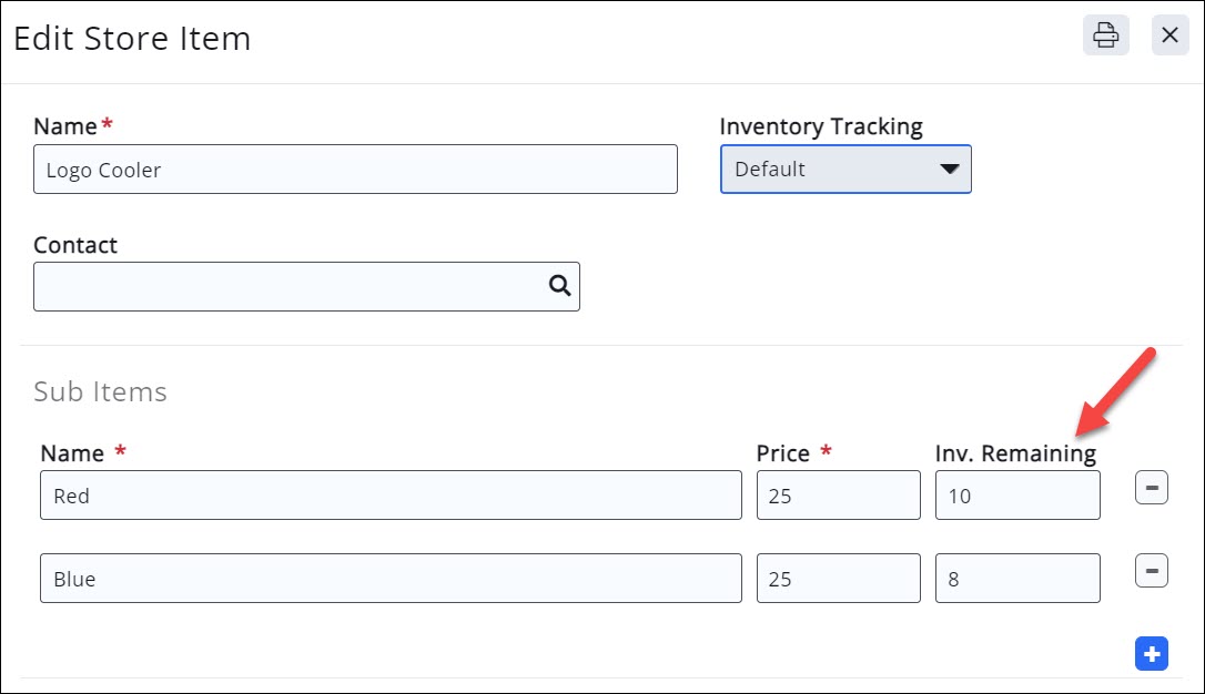 - On the Edit Store Item screen, enter the new Inv. Remaining.
