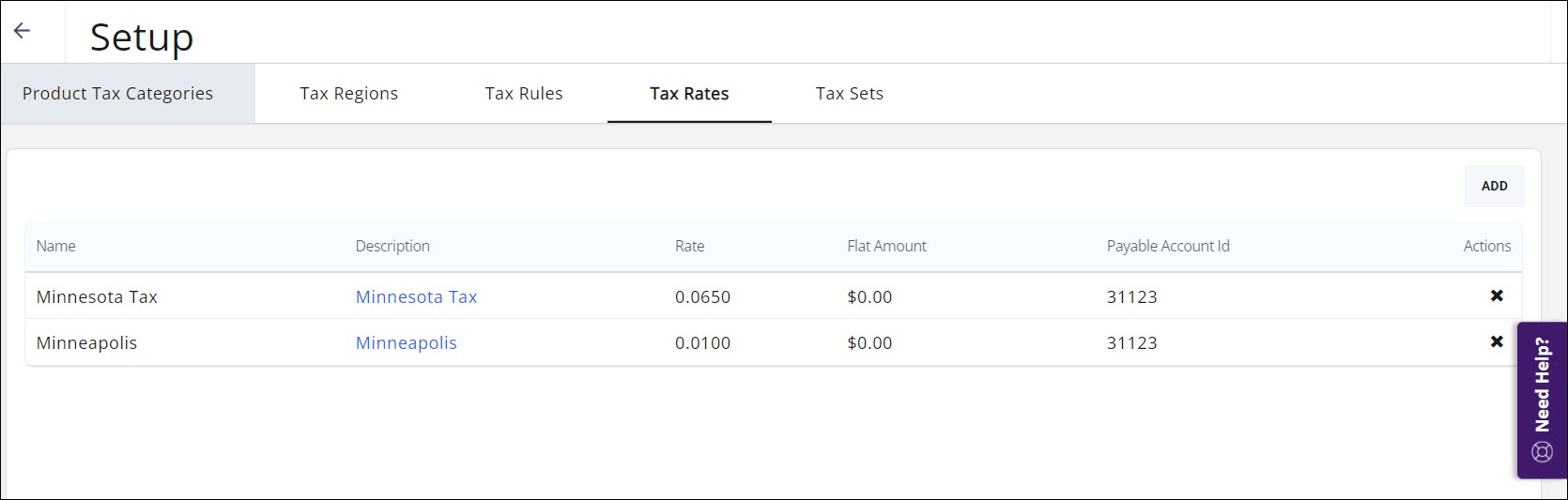 - On the Tax Rates tab, click the Add button.
