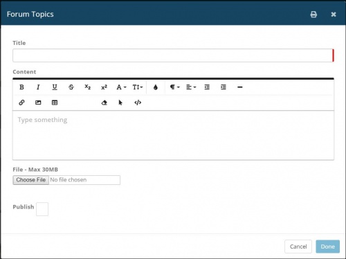 - Click Publish to post the topic immediately and click Done. To save this as a draft, simply click Done. Drafts may be accessed for further editing and publishing by clicking My Drafts in the top right section.